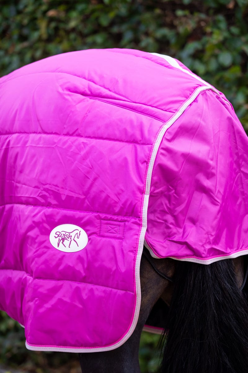 A fantastic 450g Heavy Weight Detachable Neck Stable Rug that can be used with or without the detachable neck cover. It has a 400g filling. It has large shoulder gussets, cross surcingles and a tail flap. Soft nylon lining with anti slip darts on the quarters. It is designed to sit higher on the neck/shoulders to prevent the rug from slipping back and rubbing, we have had fantastic feedback about this design. The neck attaches with 2 pieces of double sided velcro. This rug also comes with a handy storage bag.