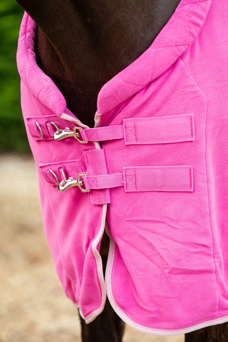 A must have winter rug for any horse. Our new winter travel rug is made from a luxurious thick fleece with wicking properties; it has double chest closures and low cross surcingles. It is perfect for use after exercise to stop the horse cooling down too quickly. It is a stunning design perfect for use when traveling to and from competitions, after exercise and after washing off. It is also handy for use in the stable. A luxury rug at a fantastic price.Please note this rug is generous fitting, if in between sizes we suggest going for the smaller size.