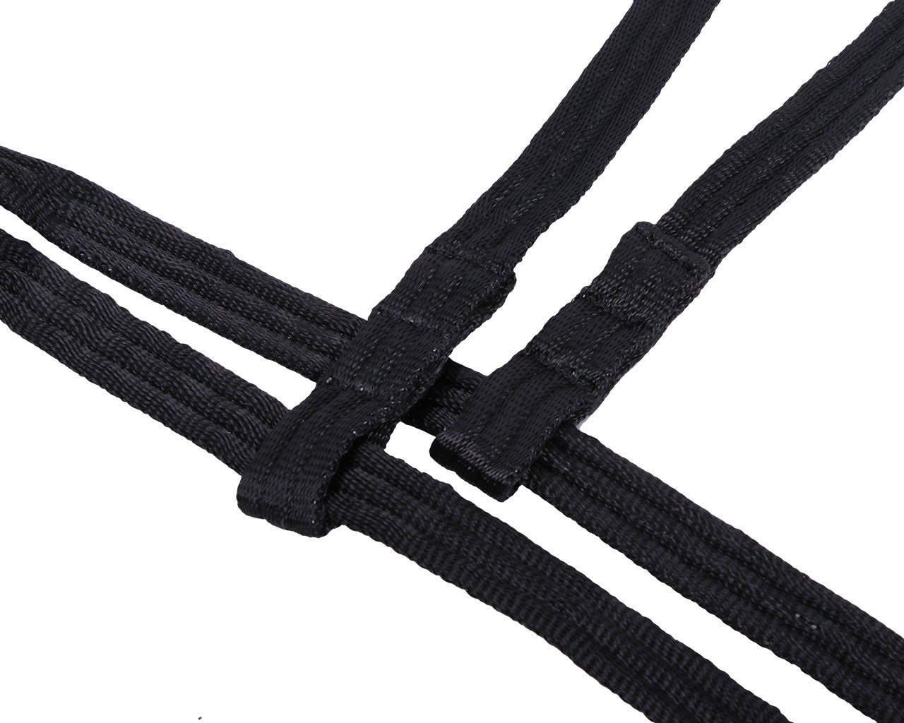 Perfect for solo traveling or dealing with stubborn horses. Made with durable polyester and zinc and steel hardware. Features a long rope with handles on each end and an attachment piece for stable positioning.